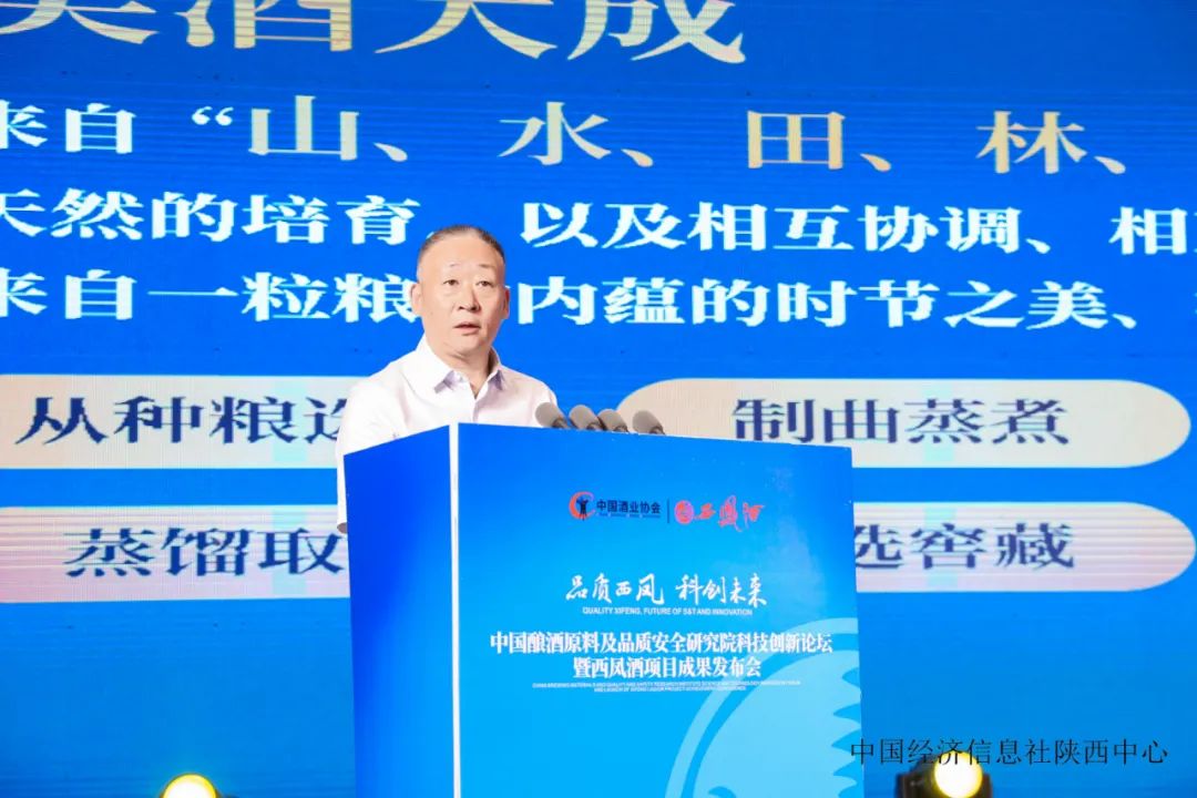 ? ? ? 8月8日,中國(guó)釀酒原料及品質(zhì)安全研究院科技創(chuàng)新論壇暨西鳳酒項(xiàng)目成果發(fā)布會(huì)舉行,中國(guó)酒業(yè)協(xié)會(huì)理事長(zhǎng)宋書(shū)玉出席活動(dòng),并以《百谷用成 千酒香醞》為題致辭。